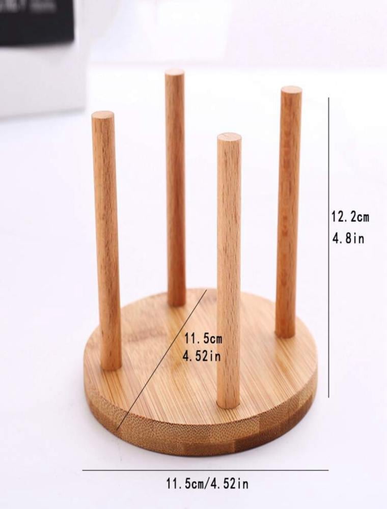 - حامل مجات عامود خشب بقاعدة ثابتة يمكنك تعليق المجات وأشياء أخري فهو متعدد الاستخدامات به 6 هوك خشب يمكنك وضعه في مطبخك أو علي سفرتك