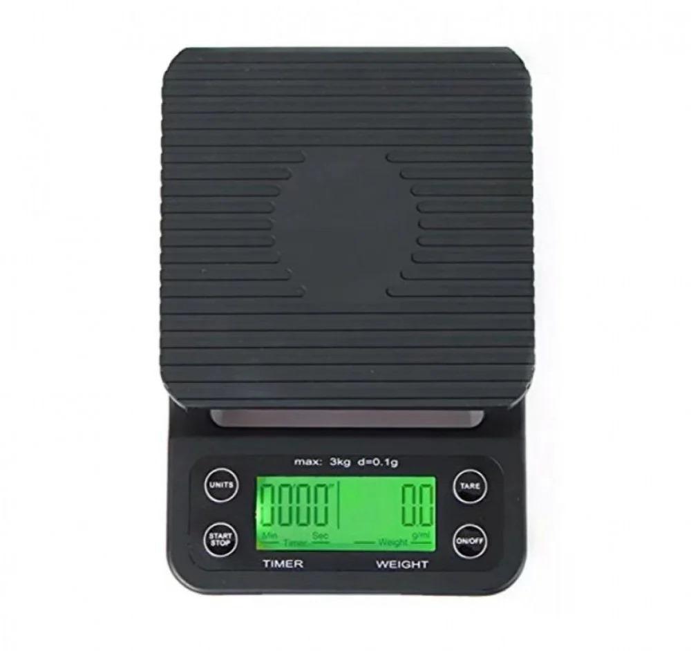 • ميزان القهوة، تزن القطعة المصنوعة من قطعة واحدة (أونصات وغرامات)، وتقيس حجم الماء (أوقيات السوائل واللترات) وأوقات الشراب أيضًا.