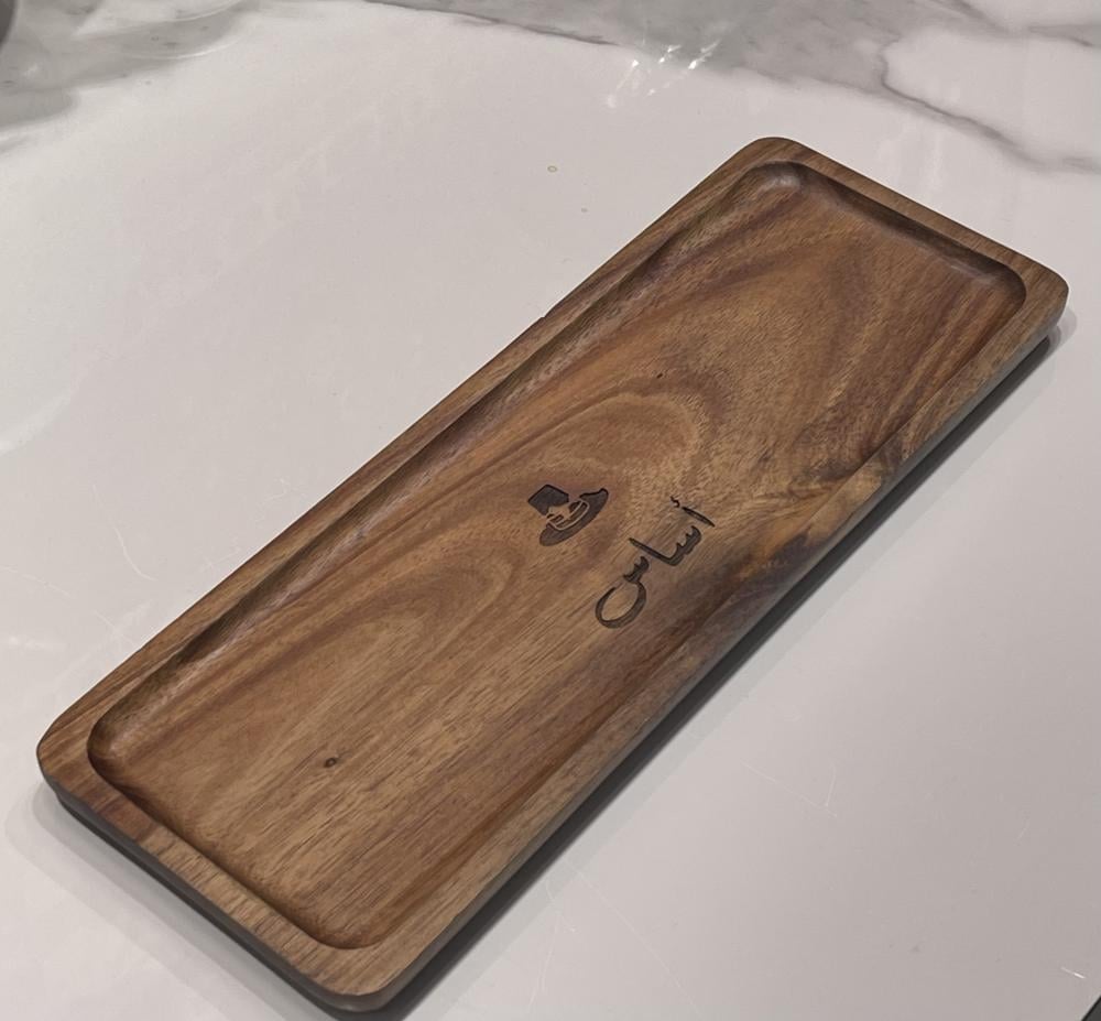 صينية تقديم أنيقة بتصميم مستطيل مصنوع من الخشب الطبيعي تضيف لمسة دفء وفخامة لأي جلسة. مثالية لتقديم القهوة، الحلويات أو للديكور، بلمسة عصرية تجمع بين العملية والجمال
